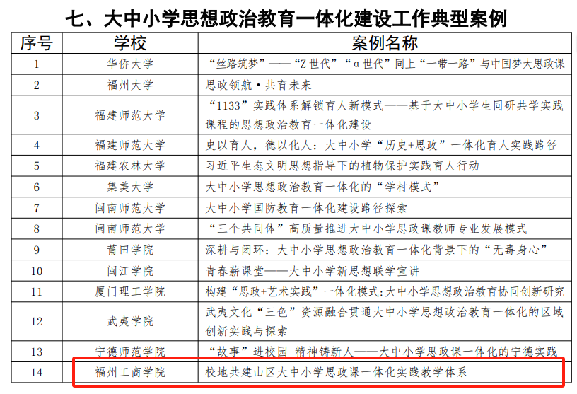 2.雷竞、陈冬梅、秦莉萍、李慧等老师的教学成果《校地共建山区大中小学思政课一体化实践教学体系》获2025年度福建省高校思想政治工作质量提升综合改革与精品建设项目。